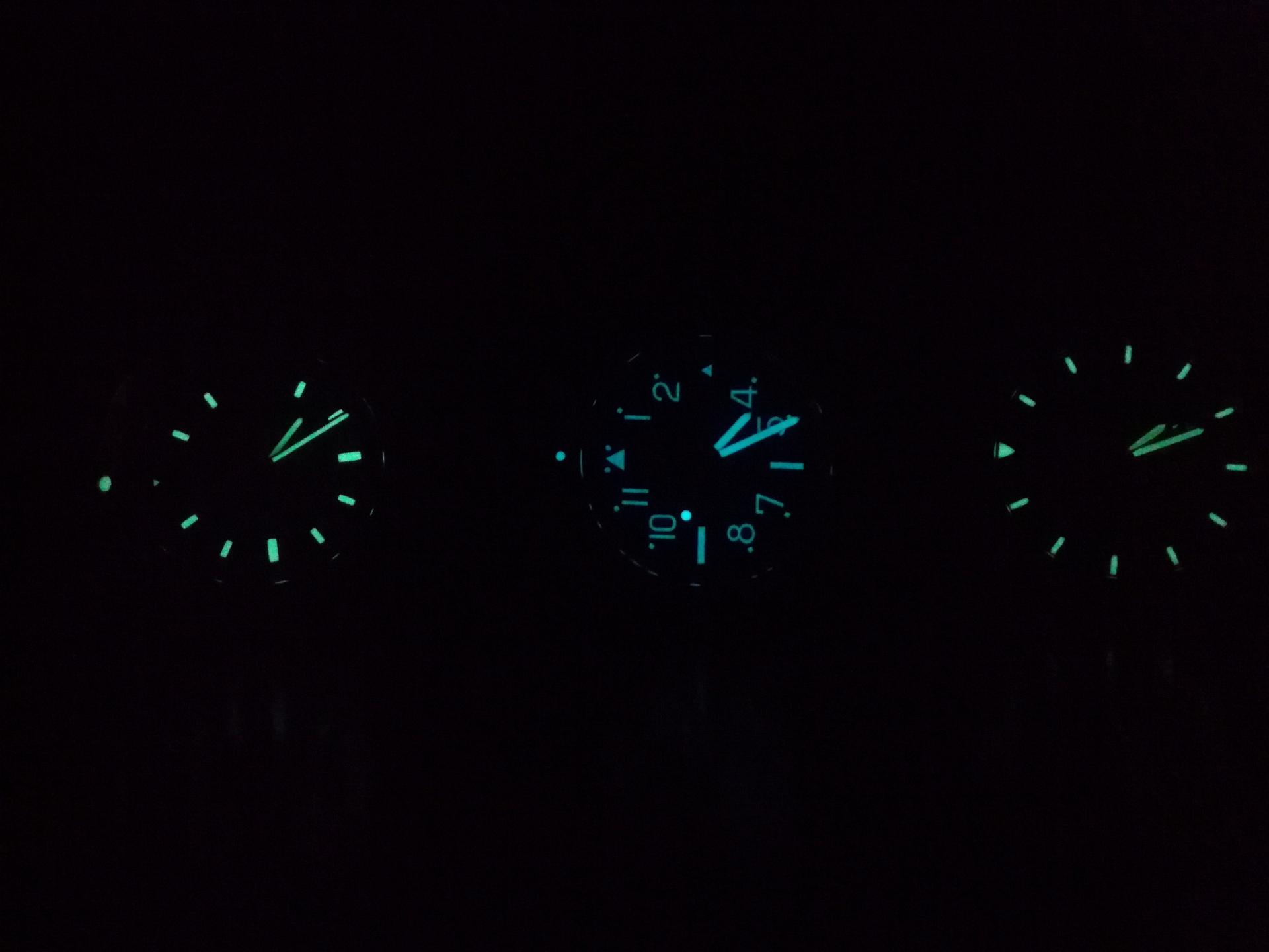 Kazaljke, satna i minutne su oblika olovke, bele boje sa nanetom iluminacijom, dok je sekundara narandžasta sa belom tačkom na sredini, na koju je takođe naneta iluminacija. Premaz za osvetljenje je Super Luminova, dobrog je intenziteta, i ima prijatnu plavu nijansu. U poređenju sa satovima koji imaju odličnu iluminaciju Marinemaster ne zaostaje.