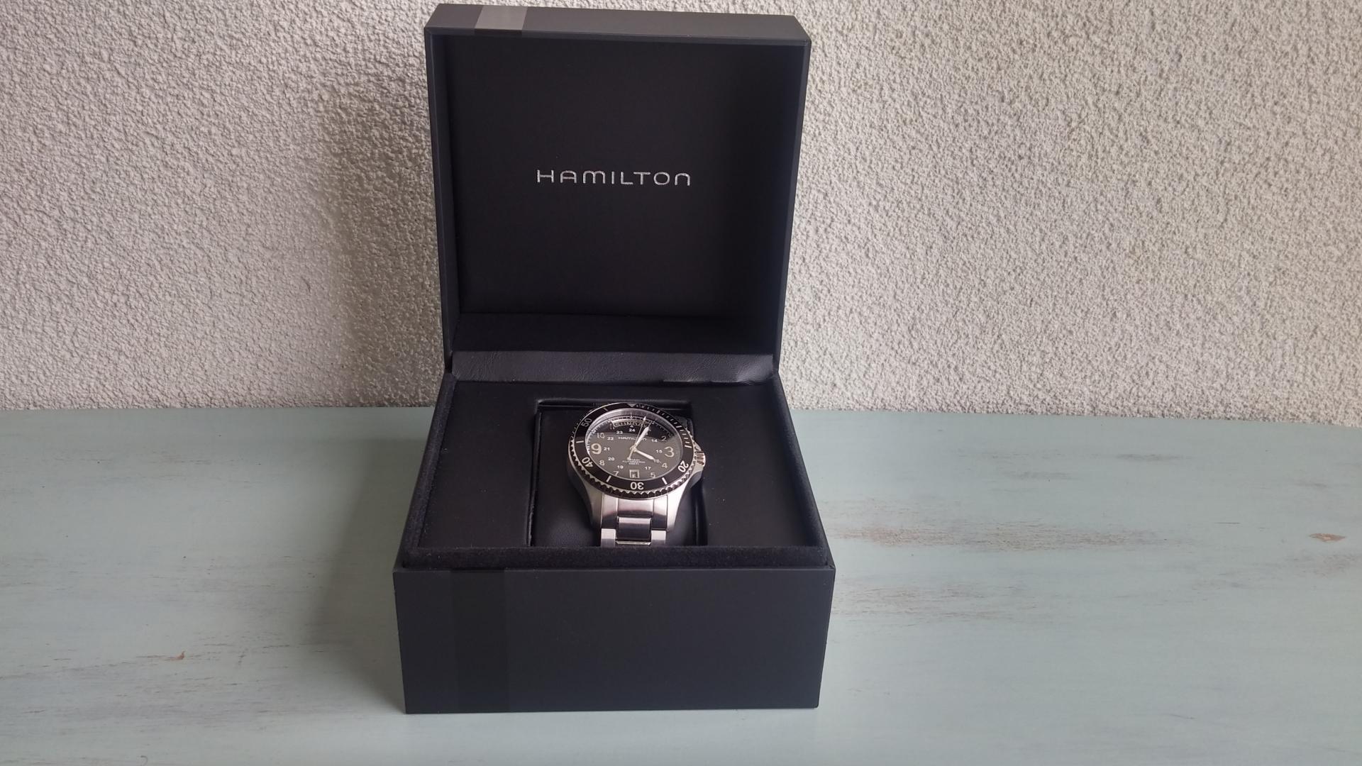 Hamilton je sat spakovao u svoju standardnu ambalažu, koja se sastoji iz dve kutije. Vanjska je napravljena od tvrdog kartona i pokriva unutrašnju, koja je napravljena iz još tvrđeg materijala i deluje, kao da je iz drveta. Na donjem, vanjskom delu unutrašnje kutije se nalazi pretinac za dokumente a unutrašnjost kutije je prevučena tekstilnim materialom. Kvalitetna ambalaža, koja uspešno prati visoku reputaciju Hamiltona.
