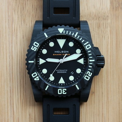 Helson Shark Diver je linija modela u vise razlicitih varijanti i velicina precnika u rasponu od 38-45mm.Materijali koji se koriste u izradi Helson SD su celik,titanium,bronza i karbon.Finalna obrada je brush,sandblasted,PVD.Mehanizmi koji pokrecu su vec klasici ETA ,Miyota 9015 i NH35.