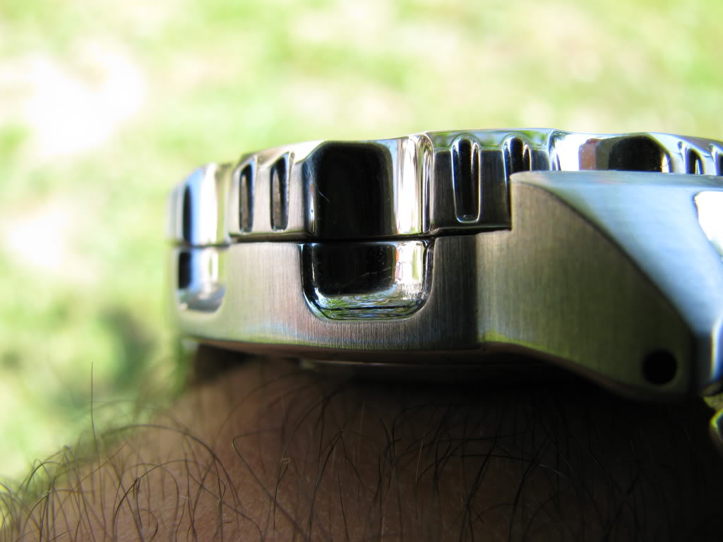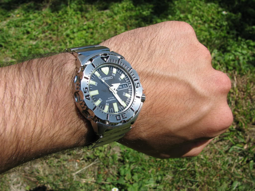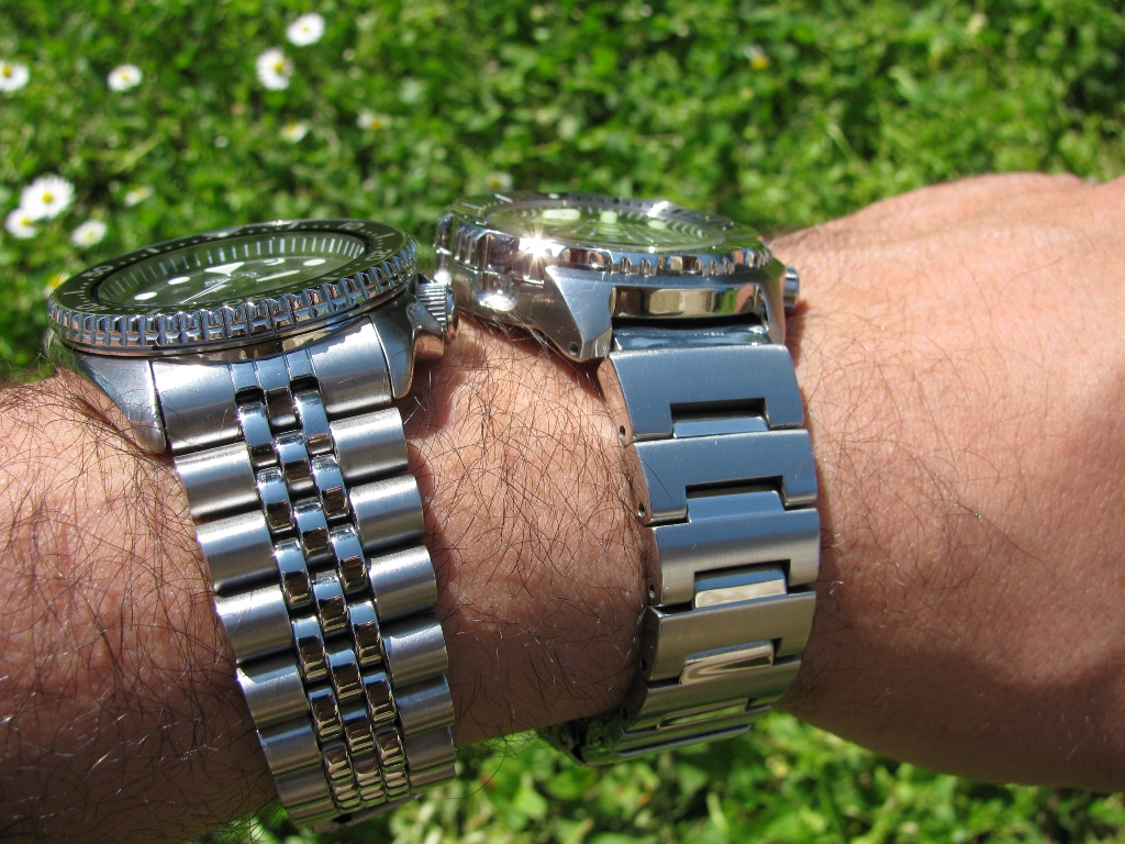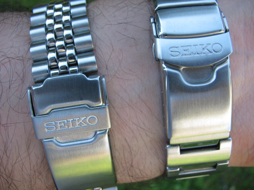 Narukvica je bitno različita kod ovih modela. Narukvica Monstera je jednodelna, kombinuje polirane i brušene površine i od punog je čelika. Ni mnogo skuplji satovi nebi se postideli takve narukvice. Narukvica 007-ce je petoredna, spoljni delovi su od punog čelika dok su tri polirana reda u sredini od savijenog lima. Kao posledica toga narukvica je veoma savitljiva i lagana a takođe neznatno više zveči u poređenju sa Monsterovom. Obe narukvice na čupaju što se i podrazumeva od proizvođača tog renomea. Ukupna težina Monstera je 173 grama dok je 007-ca teška 143 grama . Razlika u težini je najviše posledica razlike u narukvicama. Međutim i pored toga što je Monsterova narukvica od punog čelika i samim tim u blagoj prednosti postoji još nešto što čini značajnu razliku a to je kopča. Kopča 007-ce je obična preklapajuća kopča sa pet rupica za mikropodešavanja i sa dodatnim zaštitnim preklopnim delom koji je potpisan sa „Seiko“ .Kopča Monstera je takođe trodelna i sa zaštitom od slučajnog otvaranja ,sa četri rupe za mikropodešavanja dužine narukvice i ima dugmiće sa strane koji olakšavaju otkopčavanje i ono što nekome ko traži ronilački sat može biti veoma važno kopča ima ronilački dodatak koji 007-ca nema. Dodao bih da dok se nije malo razradila kopča 007-ce , relativno teško se otvarao taj dodatni tj sigurnosni preklopni deo ( onaj što je potpisan sa Seiko). Kod Monstera taj „problem“ nisam imao.