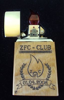 Roseart stolni upaljač, napravljen od tijela morske školjke iz Atlantskog oceana, unutra je uložak originalni Zippo..(Zippo i Roseart su sestrinske firme)..Unikat, 1 of 1(ugravirano na bocnoj strani).. rucno bojan i oslikan motiv sa cetvrtog ZFC klupskog komada..(2012. godina)