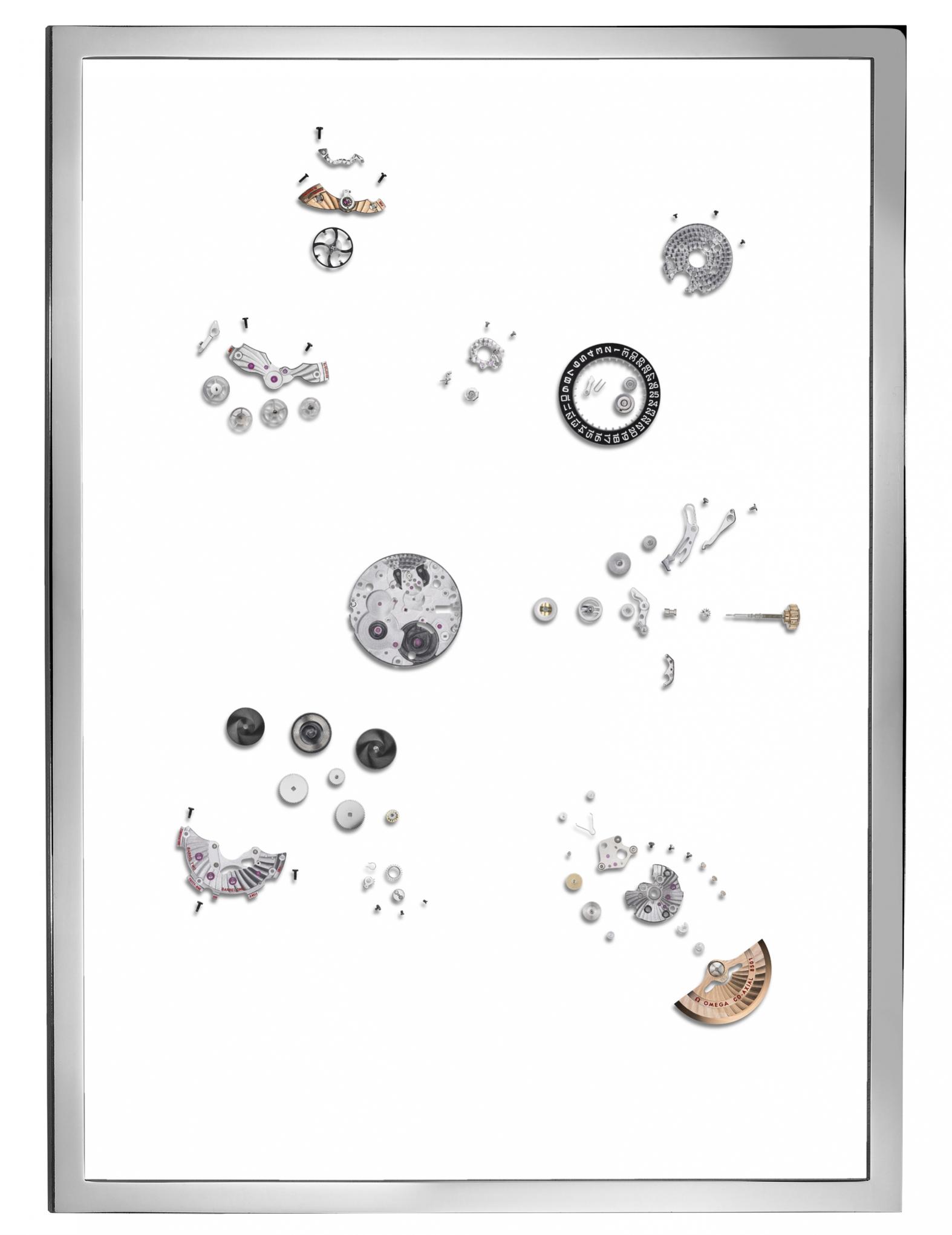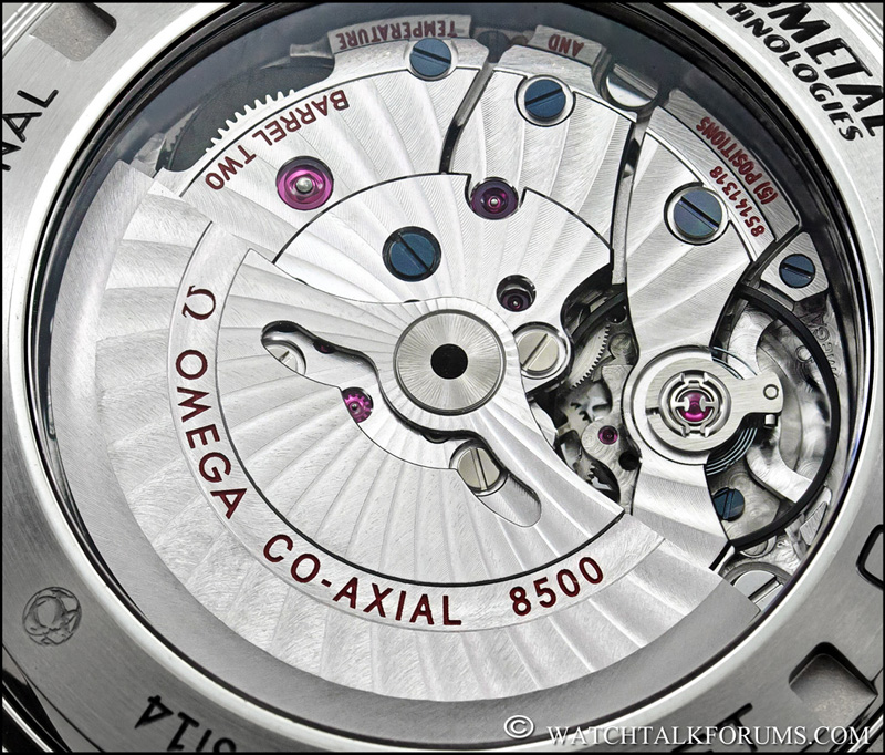Nisu mi potrebne slike keaj zivog iskustva. Posljednji kucni Omegin mehanizam je, cini mi se,bio 601 a 8500 je evolucija 2500 koji je bio 2824 sa nakalemljenim koaksijalnim retardatorom.U 8500 je dodata jos jedna opruga radi uvecana rezerve snage i redizajniran je most radi boljeg nalijeganja i saradnje retardatora sa balans tockom (sto je bio osnovni problem sa 2500 i izazivalo ceste kvarove). 2836 je,sa druge strane,day date verzija 2824 sa redizajniranom polugom klatna kako bi se smjestio dan uz datum. Razlike izmedju 8500,2500 sa jedne i 2824 i 2836 sa druge strane postoje u dodatim rjesenjima,nekim materijalima i zavrsnoj obradi ali je genetika ista,oba Omegina kalibra su zasnovana na 2824 tjelu i balansnom tocku i osnovnoj mehanici,patenti su isti.