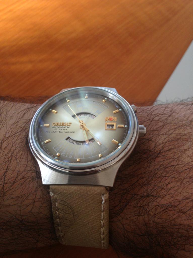 Po defaultu dodje na metalnoj narukvici koja je totalni neupotrebljivi soder ako ti je zglob nesto veceg obima pa sam malo gundjao oko toga i na poklon dobio Einchmuller mesh koji sam i ja,kao pretpostavljam i veberz,vidio na slikama u kompletu sa ovim modelom na watchuseek.Odlicno mu lezi takva narukvica jer je sat potpuno u retroffuturistickom stilu pocetka 70 - ih. Za sada cu da mjenjam kaiseve na njemu dok ne nadjem neki koji ce bas da mu legne,danas je na crnom carbon sa crvenim savom a razmisljam se i o nekoj racing bez kombinaciji za njega samo ne znam kako bi to islo sa crnoplavim metalik ciferom. Ah dileme,nikada im kraja... :)