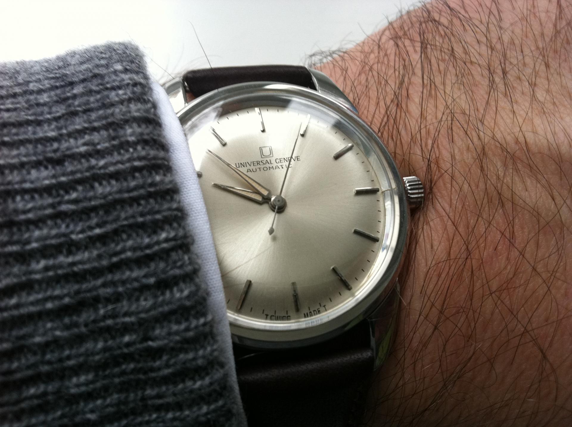 dobro jutro! danas opet jedan lep " deda " Universal Geneve...iznenadjujuce za satove 60tih, precnik od 39mm...