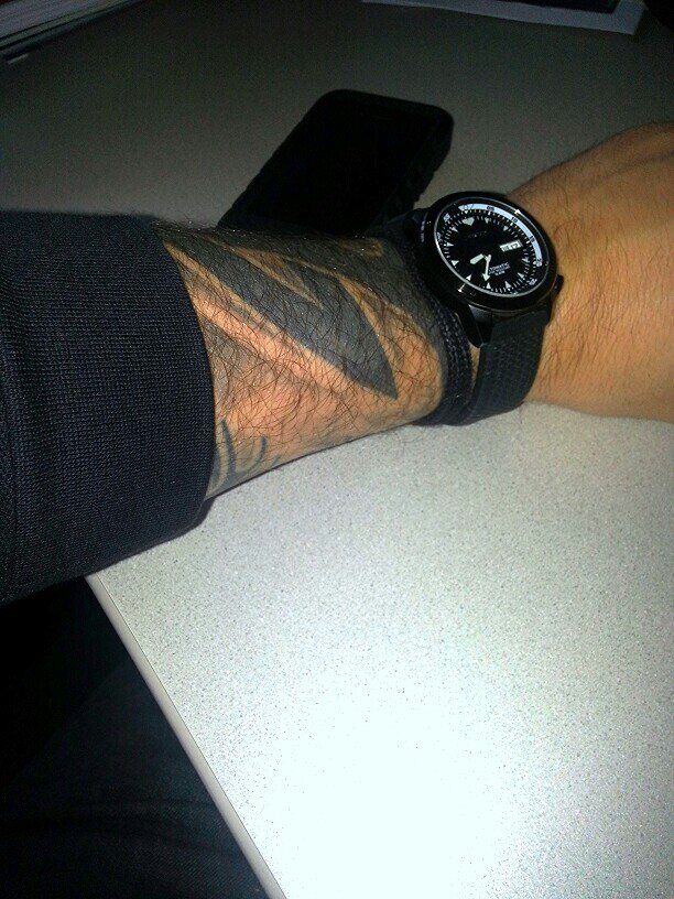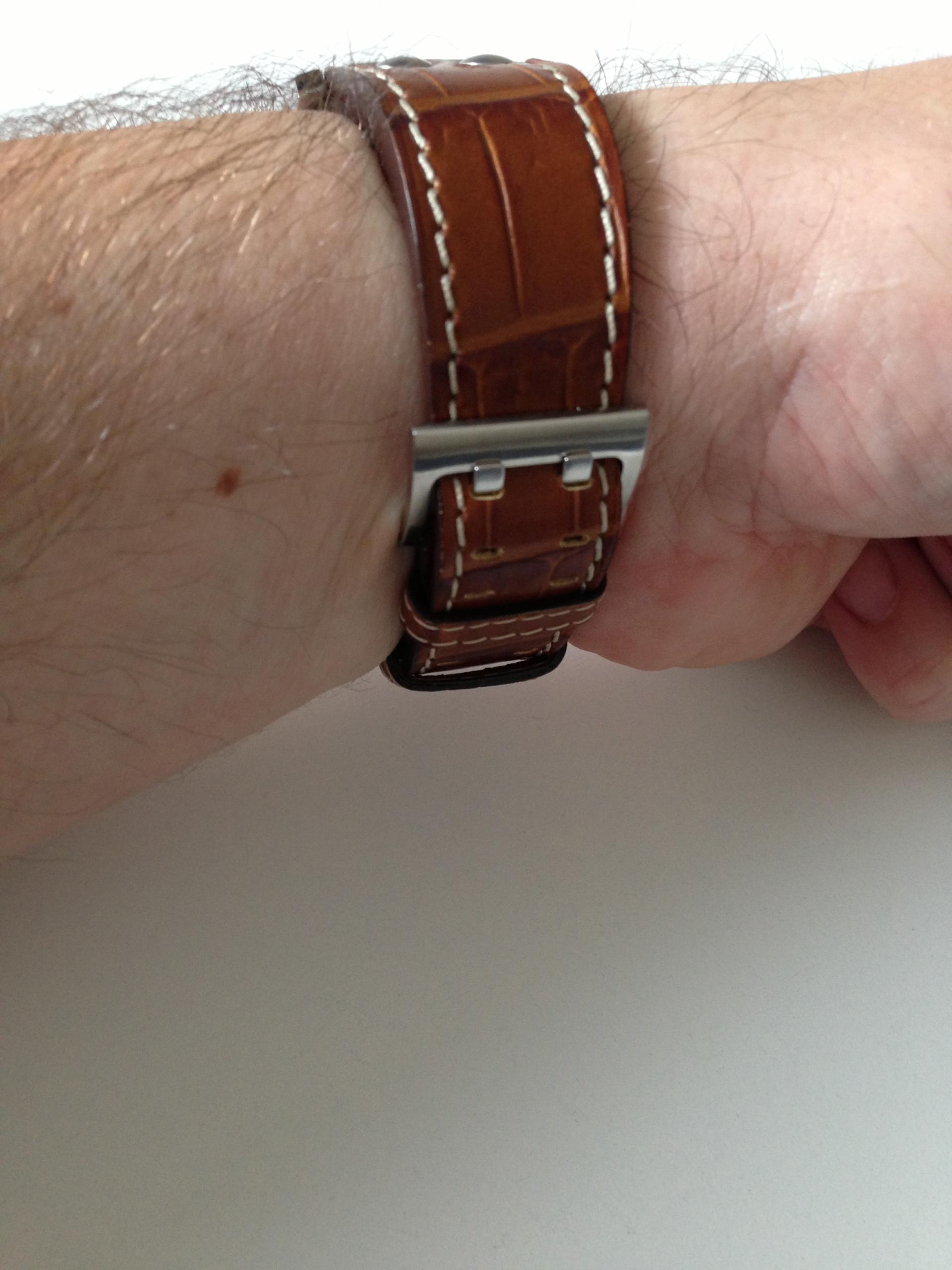 Vec neko vreme zelim da kupim kozni nato kais za Mako-a, ali mi se bas nesto nije mililo da dam 30-ak dolara za isti. Danas u trznom centru u jednoj prodavnici garderobe (American Eagle) nabasah na ovu narukvicu. Siguran sam da je zamisljeno da se nosi kao narukvica, a ne kao kais za sat, ali igrom slucaja tacno je siroka 22mm! I tako sam dobio super koznu narukvicu za Mako-a za nekih 12 dolara!Fina koza, prilicno debela, a opet mekana...