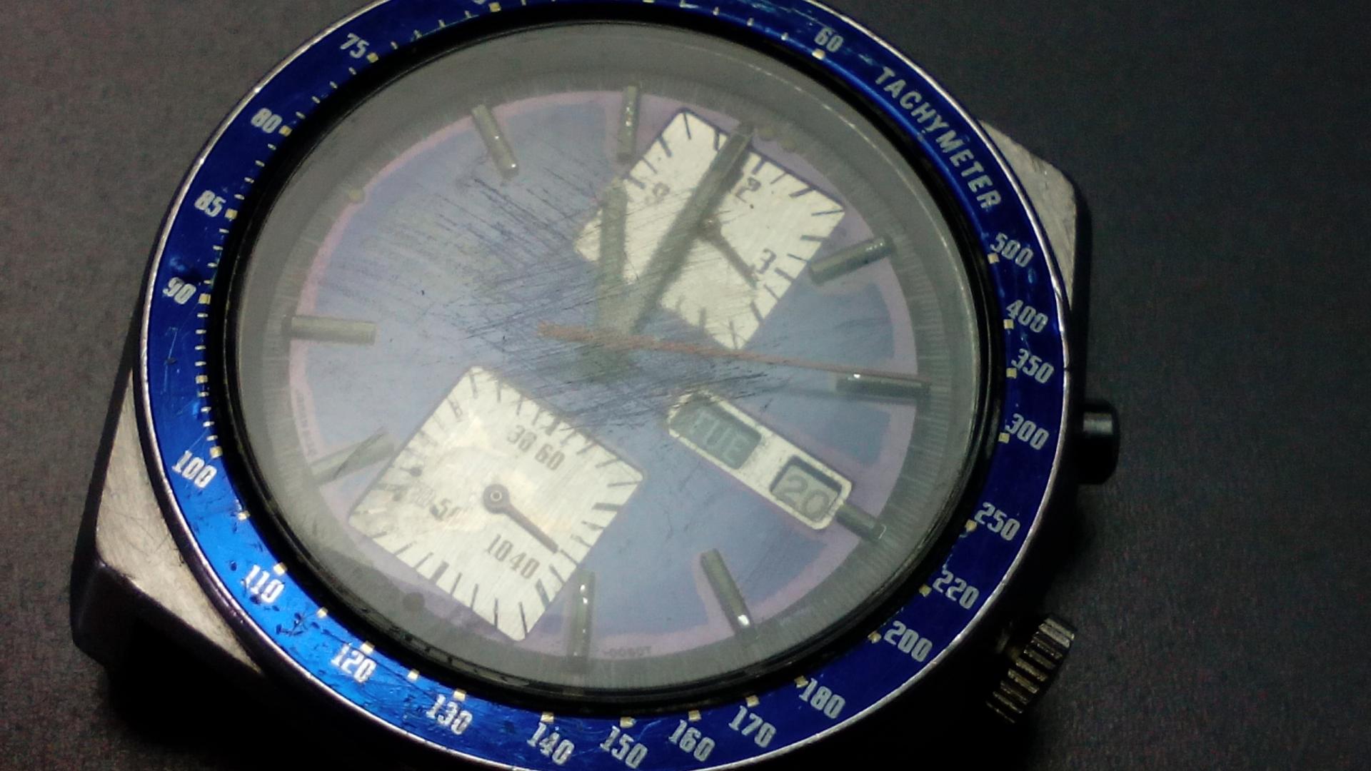 Mora Kakume na poliranje stakla (sam sebi se čudim kako sam vešto izbegao da uslikam "kraterčiće" i zamućenja" na staklu, uživo je dosta lošije), čiščenje kazaljki i prljavštine i druge sitne delatnosti (učvršćivanje krunice, promena dihtunga), a nadam se i blago čišćenje donjeg hronografa brojčanika, ako čovek pristane da radi taj zahvat...