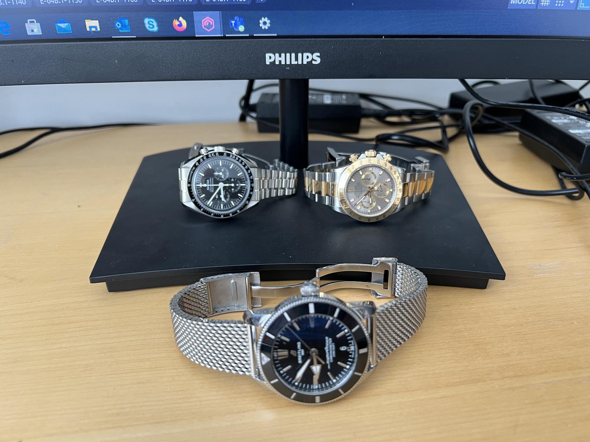Da pomognem iz mog ugla : two tone satovi me nikada nisu nešto preterano udarali u živac, više mi je totalno dress varijanta plus to je više investicija a manje sat, tako da gdin R. otpada, neka čeka i podiže cenu. Moonwatch mi je nekako staromodan i pomalo dosadan, a osim istorije, nikada nisam u njegovoj izradi (npr. ciferu I markerima ) video neku reprezentativnost i prestiž koji predstavlja.