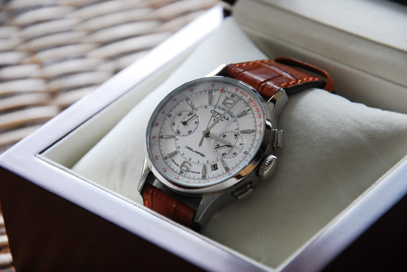 Priznajem, lepsi je onaj model sa iluminacijom, lepse kazaljke, brojevi po obodu nisu pod uglom itd, ali kad pogledam ruski sat poslednje sto zelim da vidim je latinica.... Ovaj je dosledan po tom pitanju.