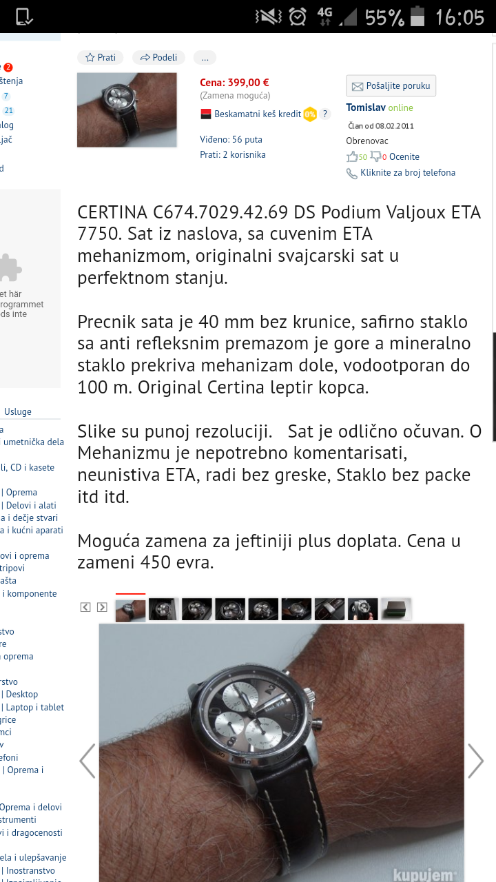 i meni je kupovina novog sata daleko isplatljivija i manje rizicna kod skupljih modela,dok se recimo kod jevtinijih modela(ispod recimo 50 eur) vrlo lako odlucim i na polovno ali od nekih po meni proverenih i relativno korektnih prodavaca koji su postali vrsta u izumiranju.