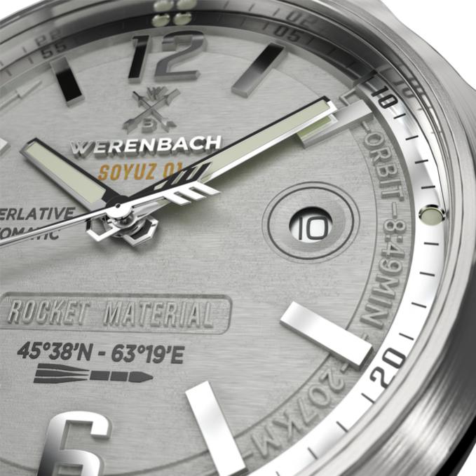 Werenbach-odlicna prica, sat iz kolekcije Soyuz ima cifer napravljen od komada aluminijuma sa letelice razbacanih po kazahstanskim stepama. https://www.youtube.com/watch?v=VZL6fuFQ2Mg