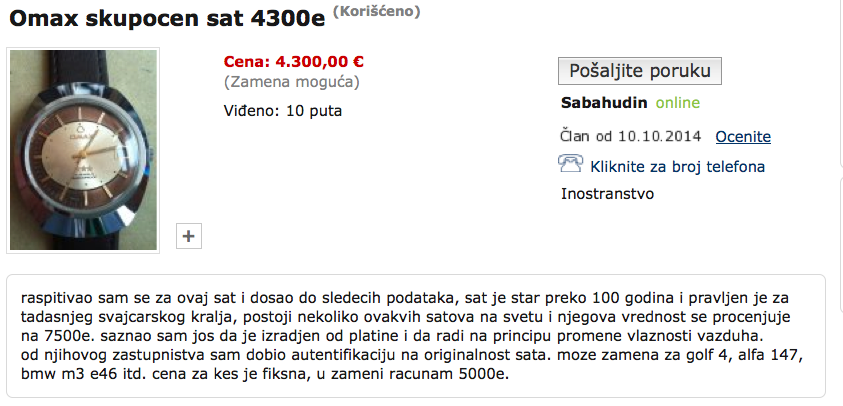 AAA replike su skupe i vrhunske... samo iskusni poznavaoci satnih mehanizama da ga zovu... ponude brila i đ-šoka razmatra... ako traćite njegovo vreme i niste ozbiljni ko on daje negativne ocene...![]()