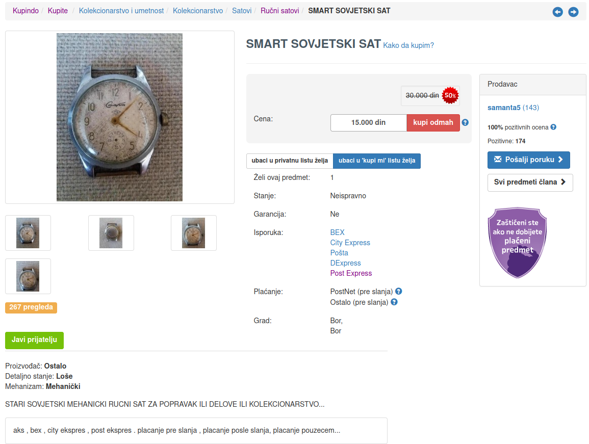 Meni je jos uvek nepobediv oglas na KP gde se za Seiko 5 sa 7s36 pod nadimkom „Nautilus“ trazi 1000€ uz napomenu da je toliko vredan i tezak za nabaviti. Ne budem lenj, odem na Chrono24, a tamo izlog pun, a cena 5x manja Nije da me je bacio u sumnju uopste, vec sam samo hteo da vidim dozu neinformisanosti, pardon, bezobrazluka.