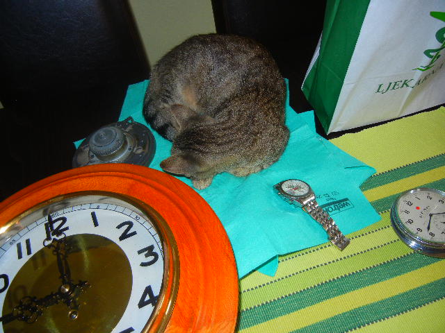Mačka Mica kućni ljubimac, voli odmarati uz satove.Prilog 96561Prilog 96562Prilog 96563Prilog 96563Prilog 96564