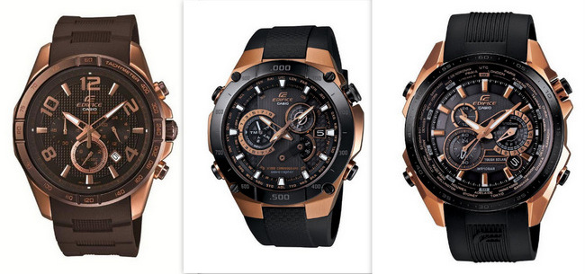 Casio je upotpunio popularnu Edifice Black Label kolekciju sa Black X Rose Gold serijom satova. Black X Rose Gold serija obuhvata tri modela i to: EQWM1100CG-1, EQS500CG-1A and EFR516PG-1AV. Karakteriše ih dinamičan dizajn i napredne tehnološke mogućnosti, smelo ukombinovane sa tonovima ružičastog zlata.