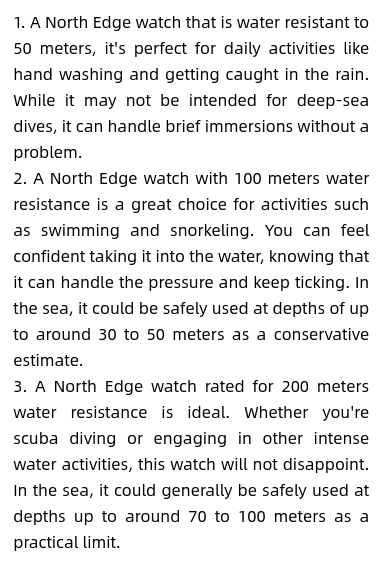 12. Diving function - water depth, water temperature, depth alarm function, max diving depth 50 meters(165Ft)