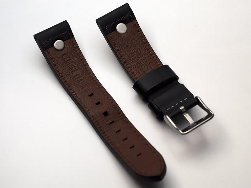 Uz sat dolazi 4mm debela kozna narukvica, prosivena belim koncem. Kod sata je sirina narukvice 20mm, da bi se sirina kod kopce smanila na 18mm.