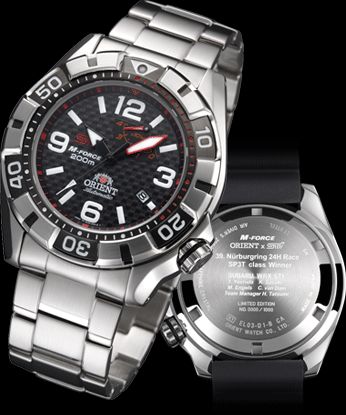 In the race the same harsh, STI Orient Watch is sponsored, was mounted on the dash board the "Orient M-FORCE" in the "SUBARU WRX STI ts", # 21 overall, has won top prizes that victory SP3T class . To commemorate this victory, "Orient × STI M-FORCE 2 011 200 meters Nurburgring 24 hour race championship commemorative limited edition model, " a type 1 item: Release from March 17, 2012 (price 63,000 yen [tax]) the I will. This item in limited quantities, limited to 1,000 worldwide, in the country has become a model of limited quantities of 300.