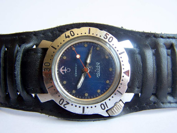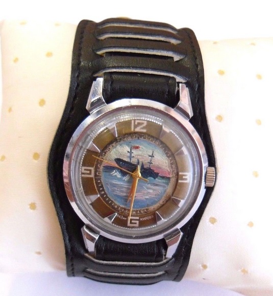 Ох, ево једне прелепе амфибије на чију слику сам управо налетео вршљајући по интернету. А најлепше је то што исти тај сат управо сад носим на својој руци. И морам да кажем како је овај на мојо руци у бољем стању. Брод на црном цифранику и црна петокрака уоквирена пурпурном линијом, симбол звезде северњаче, прави наутички симбол сигурне оријентације у мрклој ноћи.