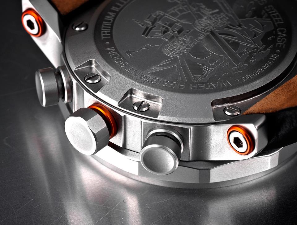 - Vertical mounting of tritium tubes on the dial provides improved illumination of the time indication.