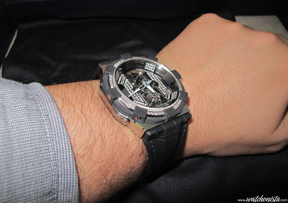 The highlight of this watch is of course the aesthetical link between the bezel and the skeleton. If one could criticize the Concord bezel, one has to admit that when the concept is taken to its limits, the watch reaches another aesthetical dimension.