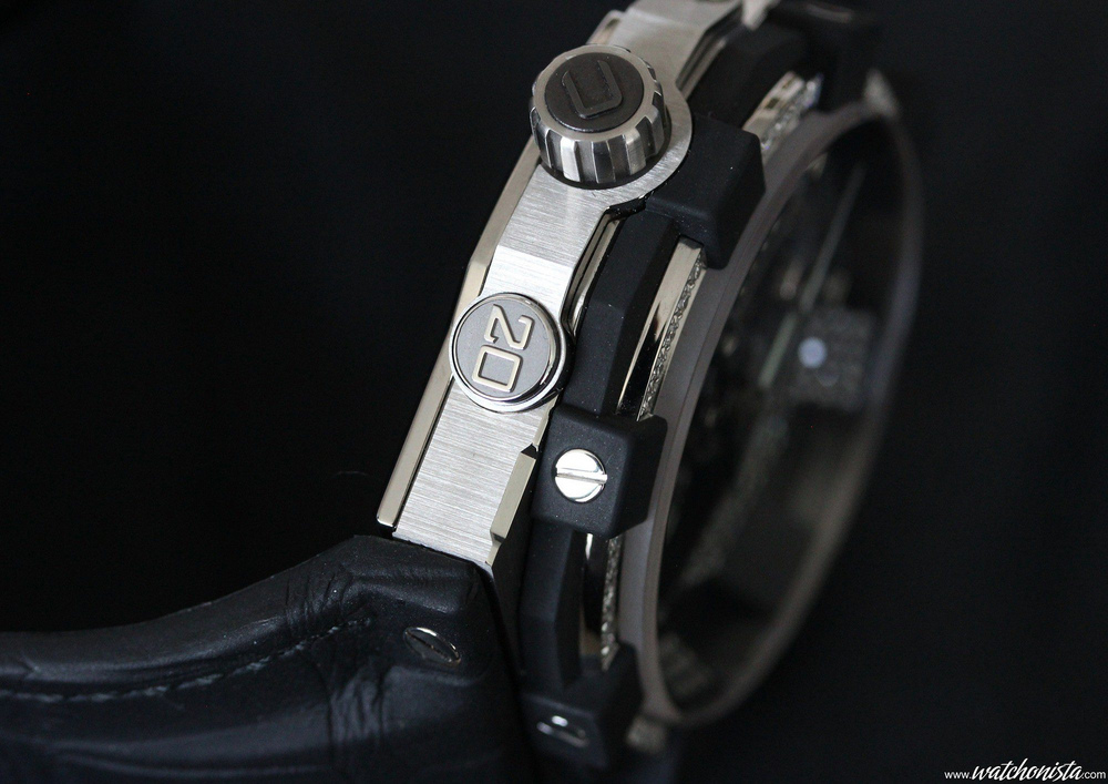 The titanium case makes 47mm in diameter for 13.55mm in thickness.