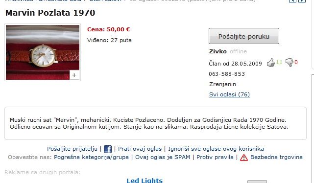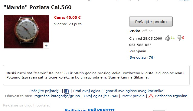 Nikako ne mogu da nadjem neku specifikaciju sata i kome da se obratim za procenu vrednosti sata.