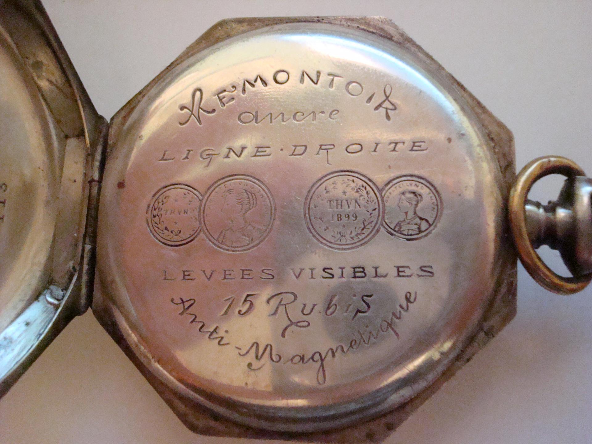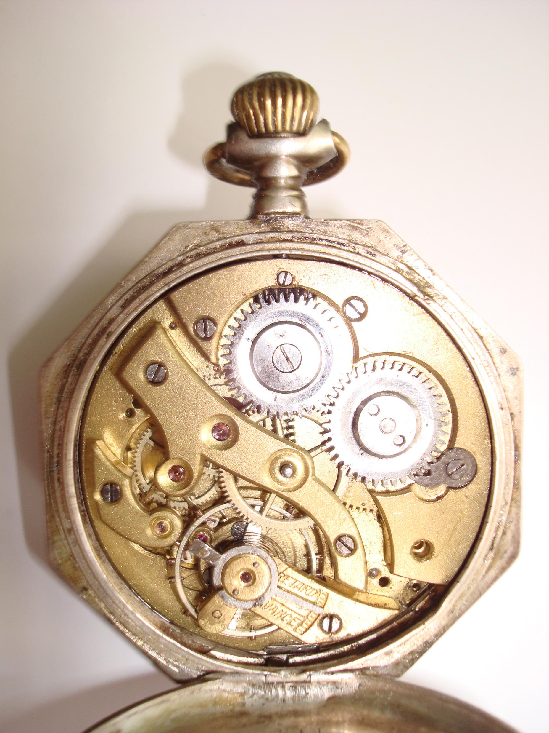 Na mehanizmu je dvostruka zaštita. Na prvoj ju ugravirano Remontair au Pendant GENEVE N110406. Na samom mehanizmu nema nikakvih oznaka, samo pise CUIVRE 110406.