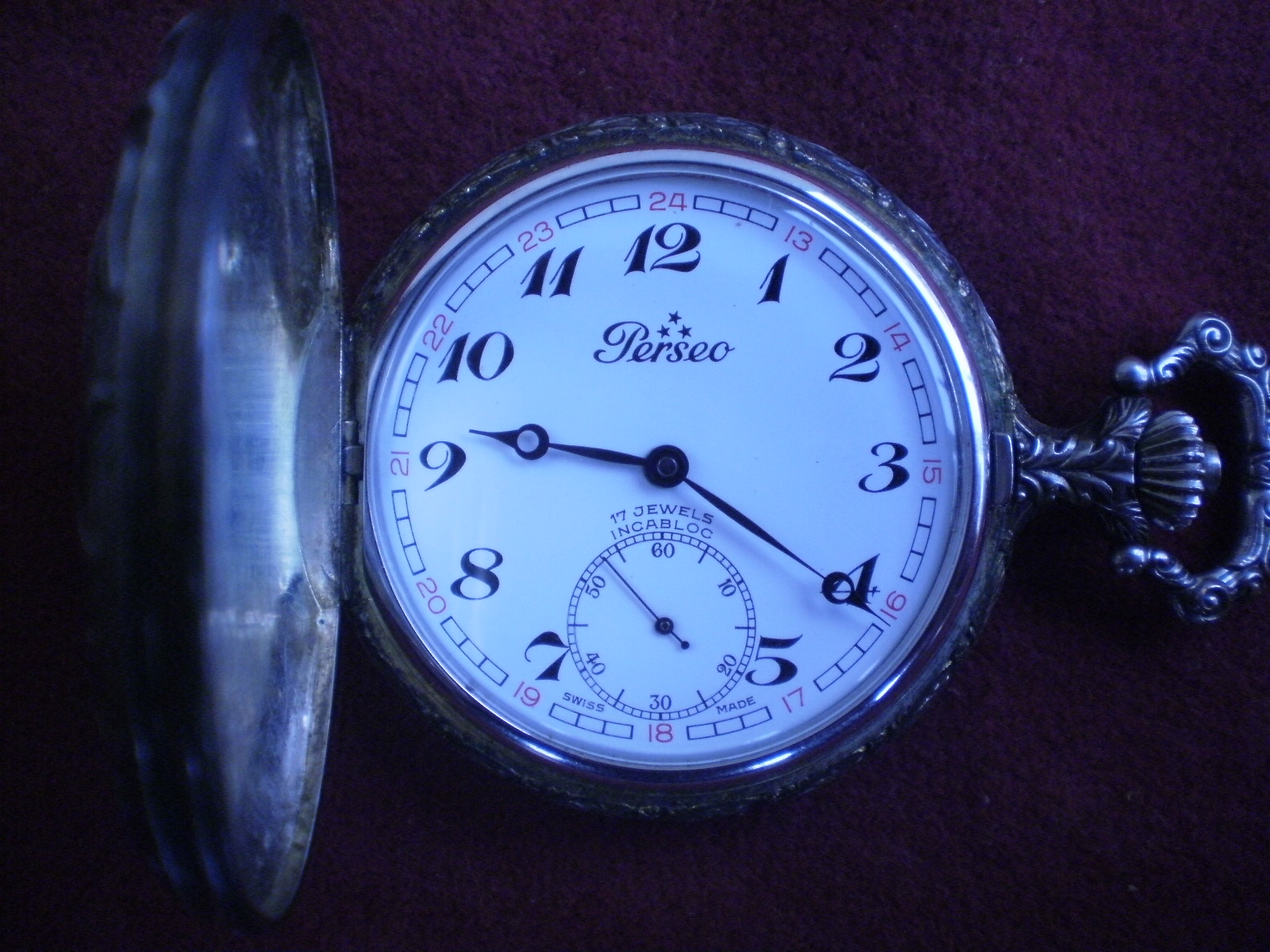 Potrebna mi je pomoc postovanih poznavalaca dzepnih satova.Prijatelj mi je doneo sat marke Perseo sa Unitas-om 6498.Ono sto sam mogao naci na internetu sam procitao(o samoj firmi i sprezi sa cortebertom,kao i cene po oglasima u italiji,engleskoj...)Ono sto me zanima je priblizna godina proizvodnje i priblizna realna cena kod nas.Sam sat je rekao bih odlicno ocuvan (cifer,pleksi,kutija).Mehanizam poznat i dobar nezna se kad je i dali je servisiran (nema ni urezanih datuma na poklopcu),radi odlicno i za 24h je u plusu 2 sekunde.
