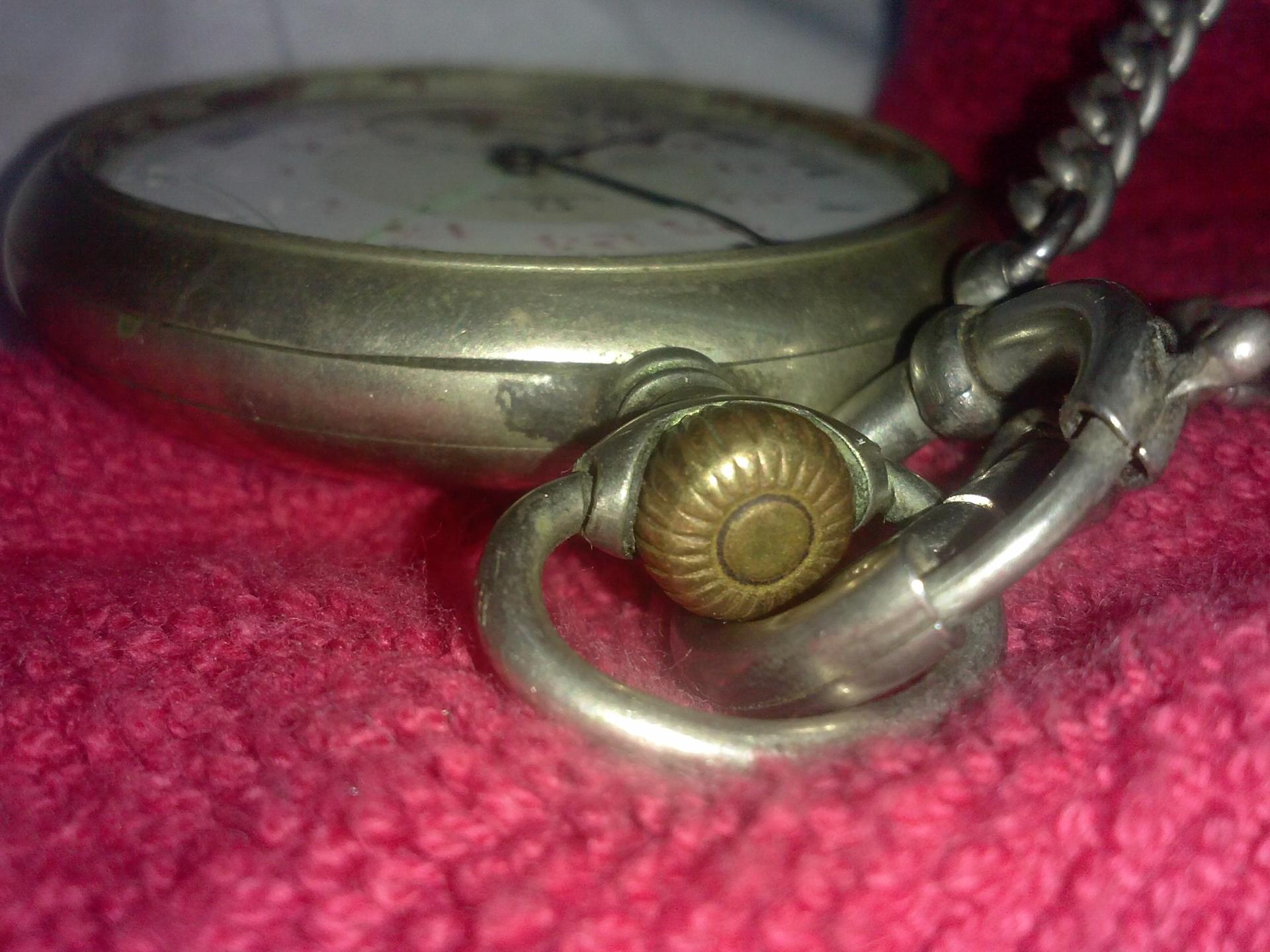 Glavna mana - "staklo" tj plastika koja je nekad stavljena umesto stakla (ne verujem da ovo fabricko resenje, vec neka nevesta popravka, jer savitljiva plastika ne naleze lepo, i kao posledica toga cifer se napunio svakakvom strokom). Ne naleze do te mere da je satom nemoguce rukovati a da plastika ne ispadne. Cifer je ostecen, pukotina koja je oksidisala i pozelenela. Metal izmedju cifera i "stakla" je oksidisao na vise mesta. Vrh kazaljke za minute je blago povijen na dole, prema ciferu, ali ne dodiruje ga. Mislim da je ostalo manje-vise ok.