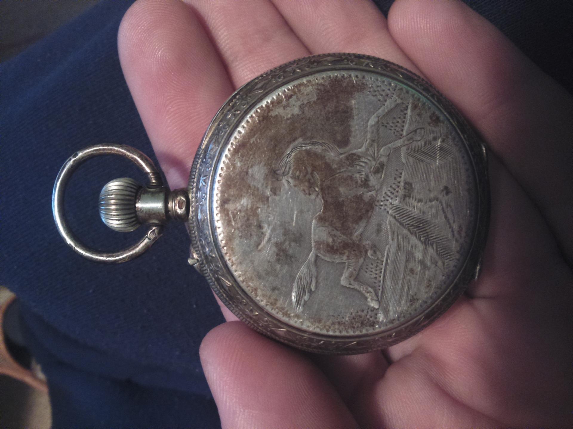 Postovani poznavaoci satova... ja lično nemam pojma o satovima . Pronašao sam ovaj stari sat na tavanu... Saljem slike, ako moze procjena..koliko je star, koja je marka, kolika je moguca vrijednost. Radi kad se navije, u unutrasnjoj strani ima posvetu ugraviranu na njemackom...nemam pojma sta pise...slabo se vidi...kao da je neko iglom rucno ugravirao.