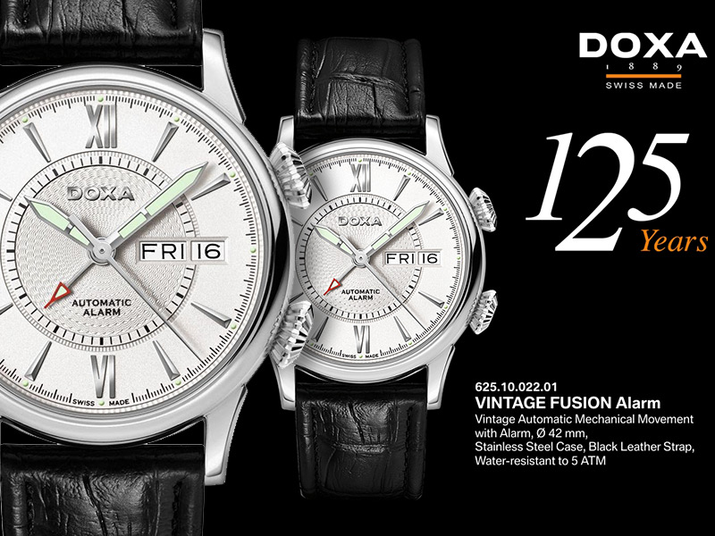 Časovničarska kompanija Doxa ove godine proslavlja svoju 125. godišnjicu poslovanja i u tu čast je predstavila novu Vintage Fusion kolekciju. Tokom godina je kreirala veliki broj kvalitetnih i poznatih modela, a na Baselworld-u 2014 su promovisana četiri muška i jedan ženski model iz ove linije satova. Klasični i elegantni - pridevi koji krase novitete njihove ponude.