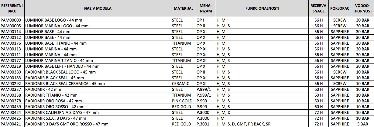 U ovoj temi ću putem tabele predstaviti Officine Panerai modele satova sa karakteristikama - Katalog 2012:
