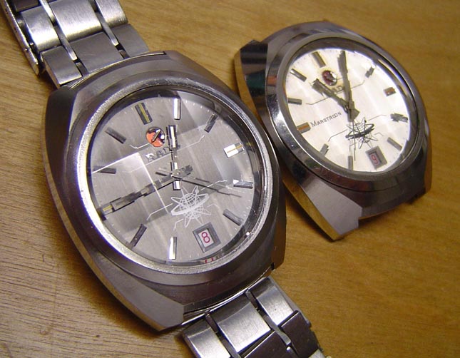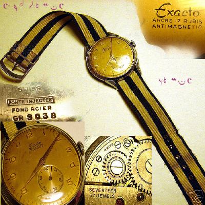 Prikazana su dva Exacto sata. S obzirom da su proizvođeni samo nekoliko godina ovi satovi su retki i cenjeni kod kolekcionara.