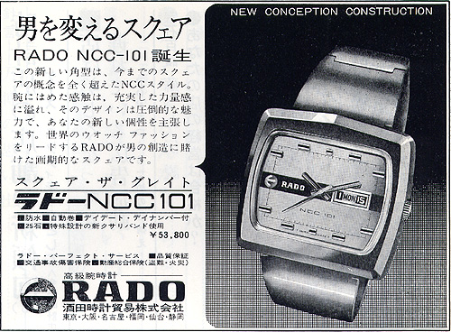 Kao što je već rečeno1957. godine kompanija menja ime u Rado. Prvi model kompanije Rado jeste Starliner ( nema fotografija tog modela ali se od kasnijih izdanja Starliner-a vizuelno razlikuje po tome što nema logo u obliku sidra na brojčaniku ). Godine 1958. Rado predstavlja model Green Horse ( kasnije se pojavljuje i model Golden Horse, Silver Horse, Purple Horse ) . Jedna od pretpostavki je da je naziv Green Horse izabran zato što je konj simbol sreće u mnogim azijskim zemljama a Azija je jedno od tržišta koje je Rado ciljao. Prema prikupljenim podacima pomenuti modeli imali su vodootpornost od 120 m iako nisu imali ušrafljujuće poklopce ( pritiskom se žljebovi na poklopcu uklapaju- užljebljuju sa žljebovima na kućištu ). Još jedan model koji je imao interesantan naziv jeste model Gazelle ( gazela ). Prema rečima kolekcionara i odličnih poznavaoca Rado kompanije ime Gazelle je izabrano zato što ona predstavlja simbol životnih izazova, nove ljubavi kao i brzine i opreznosti. U to vreme Azija, Bliski istok i Južna Amerika bila su značajna , ako ne i glavna , tržišta na kojima je kompanija nastupala , otuda takvi nazivi i simbolika.