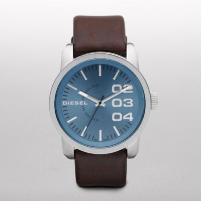 Sa braon kaišem od prirodne kože, velikim brojevima i svetlo plavim brojčanikom ovaj sat inspirisan aeronautikom dobija modnu trku.
