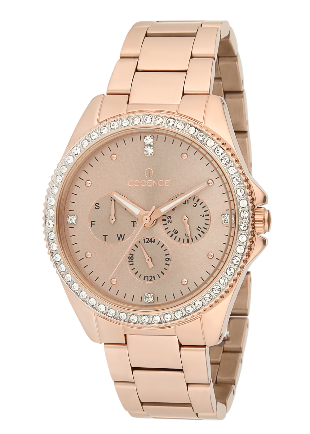 Sportsko-elegantni ženski časovnik nosiv u skoro svim prilikama. Sat je u boji ružičastog zlata i dodatno je ukrašen kristalima.