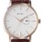 Čelično kućište sa pozlatom, braon kroko narukvica sa belim štepovima, 2 godine garancija.