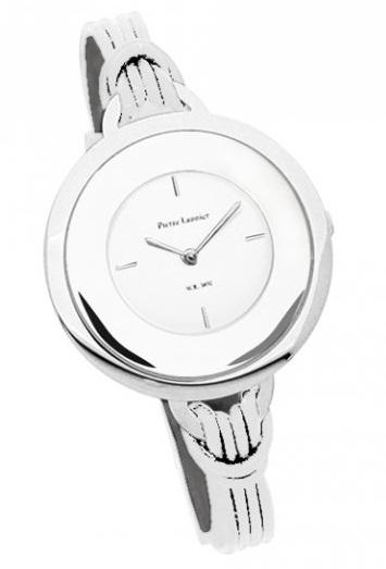 Čelično kućiste sa belom kožnom narukvicom, garancija 2 godine.