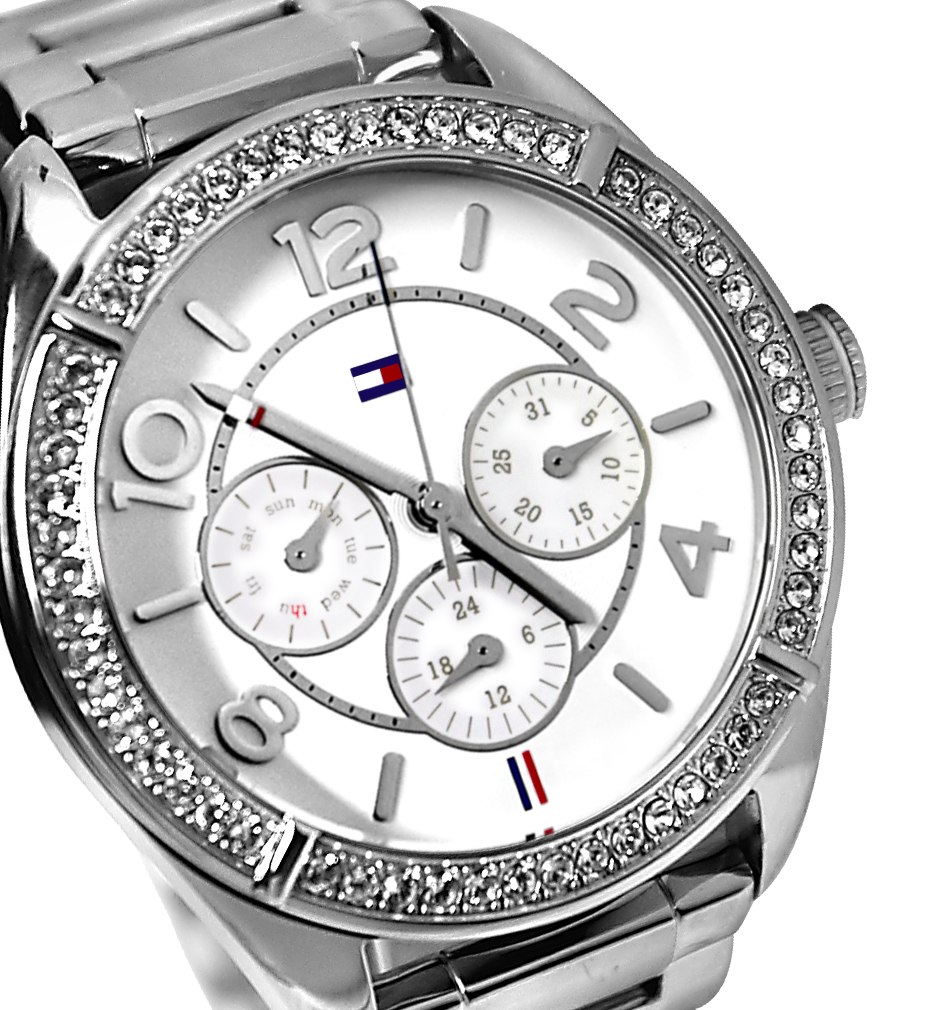 Multifunkcijski ženski časovnik, sa kućištem i narukvicom izrađenim od nerđajućeg čelika.