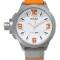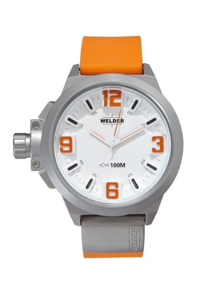 Mat čelično kućište, beli brojčanik sa narandžastim detaljima, narukvica narandžaste boje