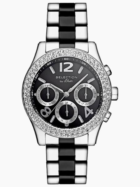 Časovnik iz kolekcije Selection by s.Oliver. Njegova korona je dekorisana kristalima, dok narukvica ima umetke u crnoj boji.