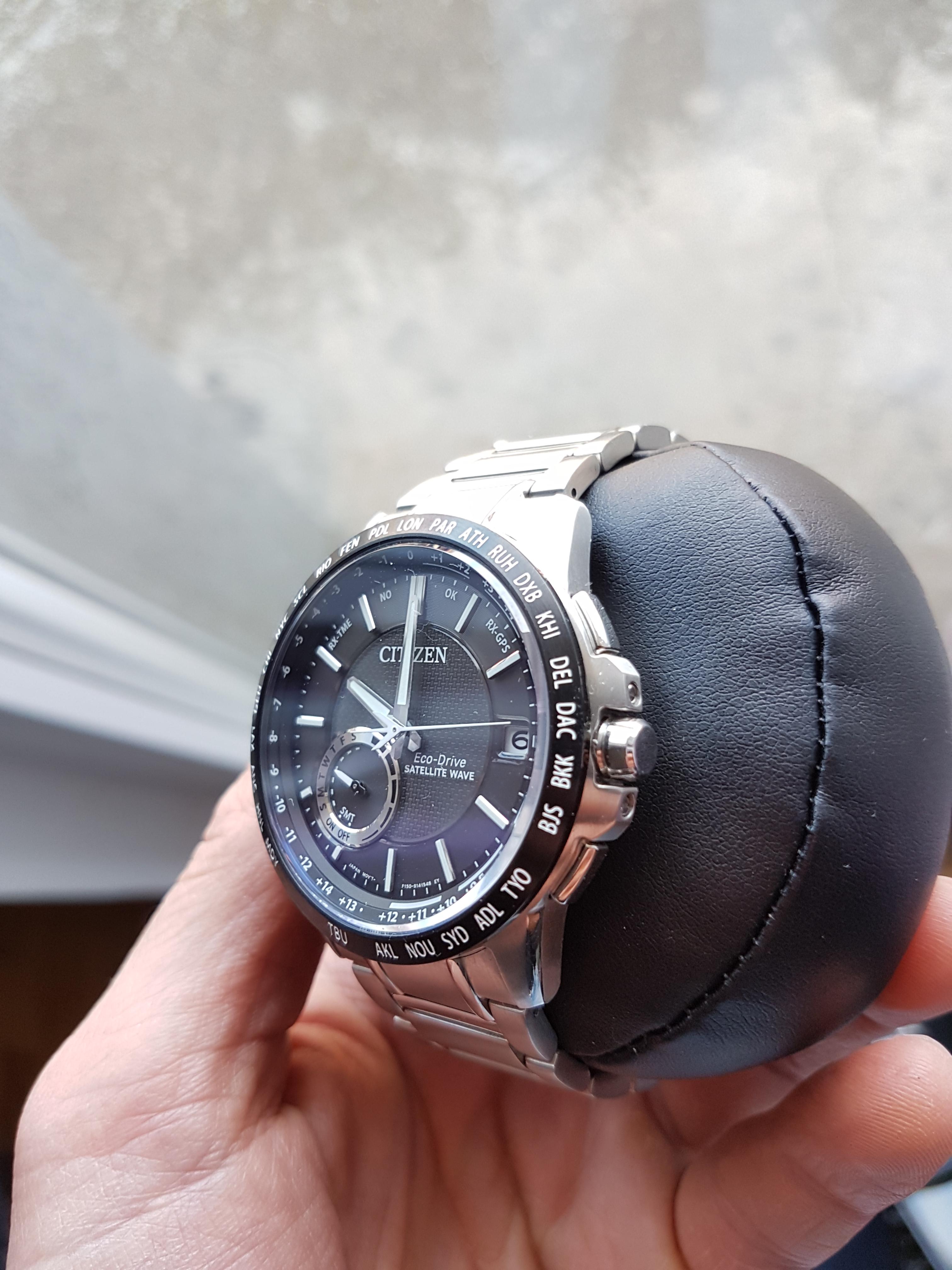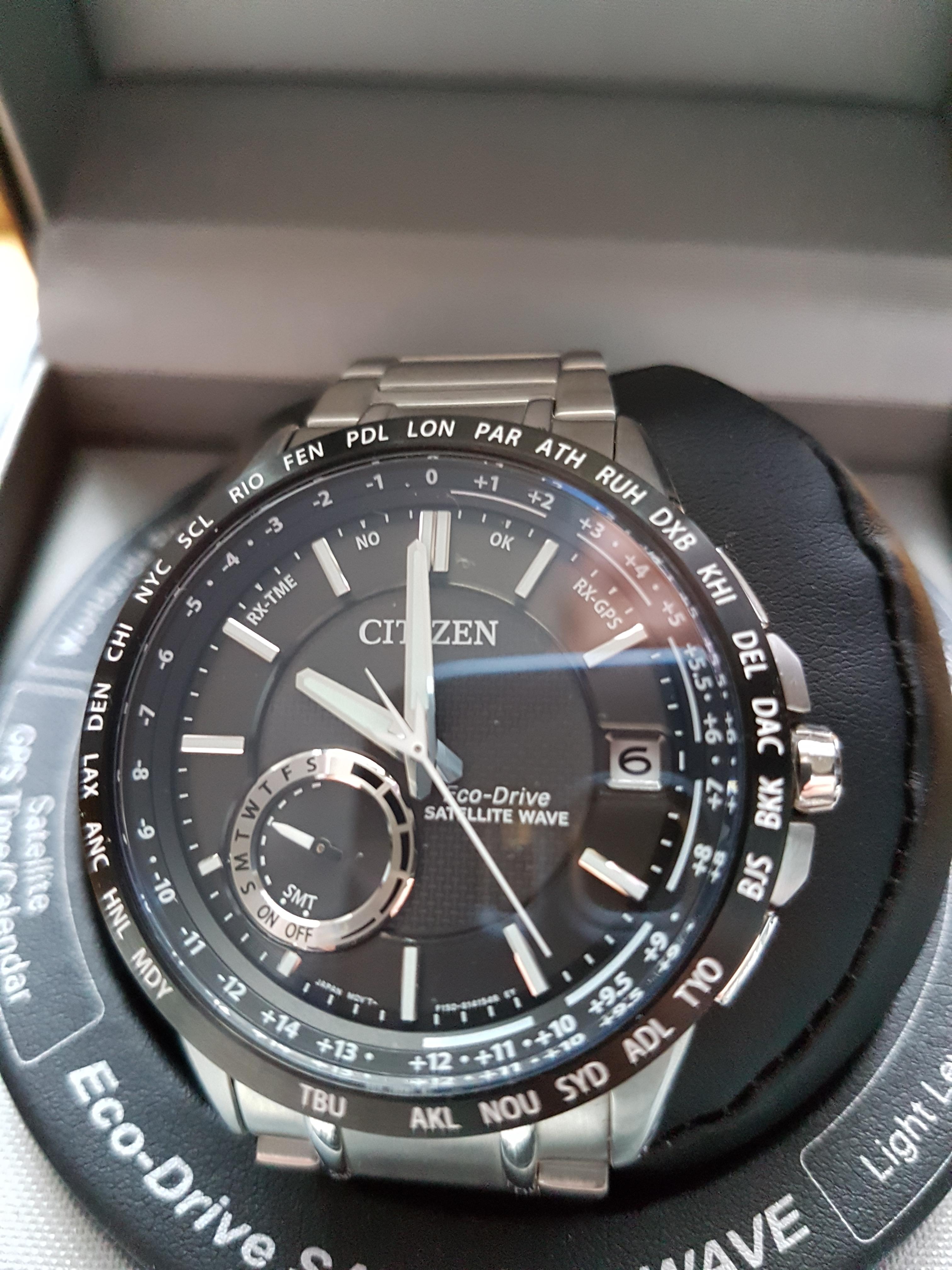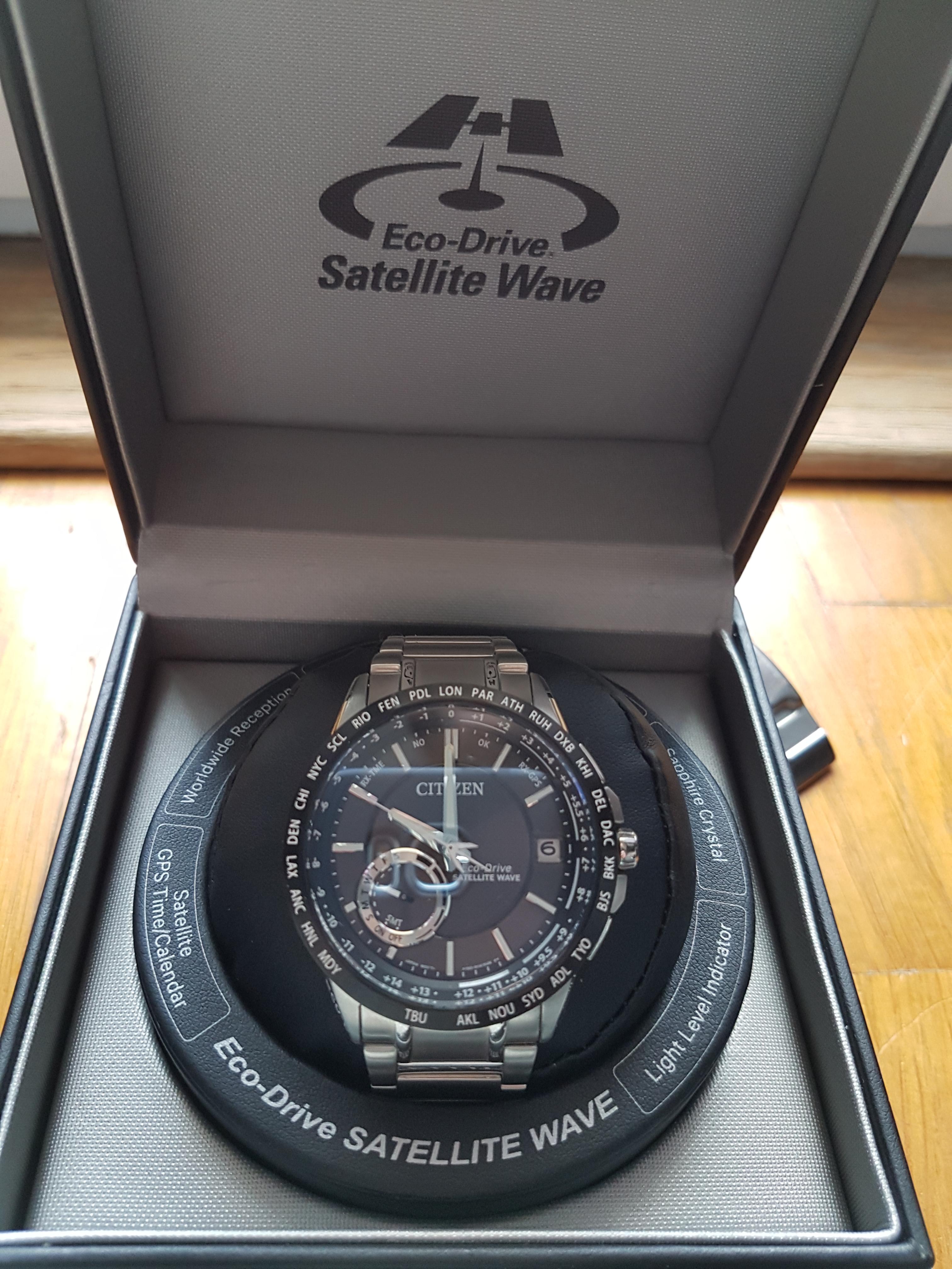 Citizen Satellite Wave F150 CC3005-85E. Sat je nov sa specijalnom kutijom za Satellite Wave i garancijom. Izuzetno kvalitetan sat prelepe izrade sa GPS funkcijom automatskog vremena u 27 svetskih gradova. Ukratko GPS funkcija je daleko naprednija od Radio Controled opcije ovaj sat nema limitiranosti na blizinu radio predajnika i prima signal svuda u svetu veoma brzo za svega nekoliko sekundi, parapetualni kalendar , safirno staklo otporno na grebanje. Za vise informacija pozvati 0642665834.