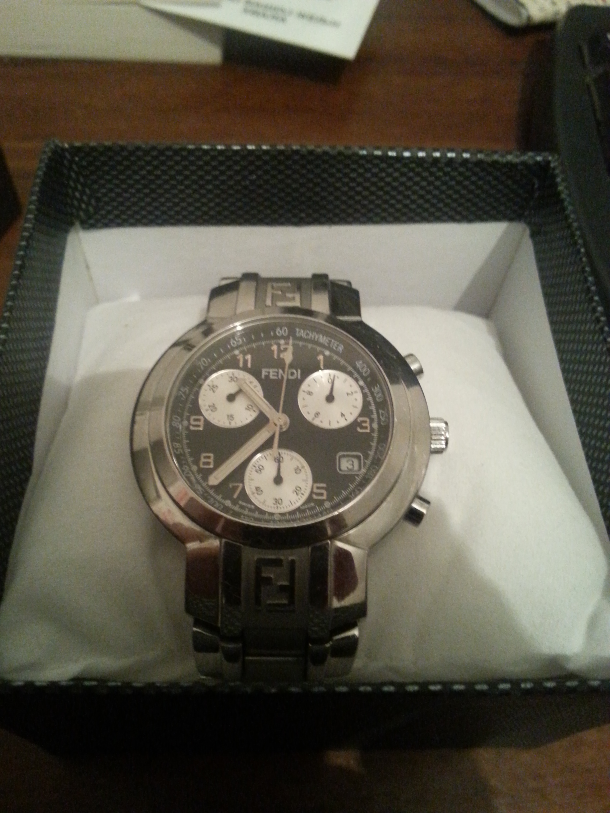 Veoma redak Fendi rucni sat na prodaju, jako malo koriscen. Sat je originalan i na sebi ima upisan serijski broj: 024-4500G-817. Uzivo izgleda jos bolje nego na slikama i kada se stavi na ruku oseti se tezina i kvalitet. Svaka kazaljka na satu je potpuno ispravna i svaka je u funkciji, kao i stoperica. Ko zeli moze pogledati nekoliko stranih oglasa na kojima se ovaj sat prodaje za mnogo vise od gore navedene cene.