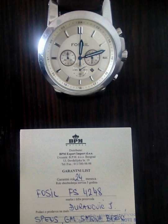 Prodajem izuzetno ocuvan FOSSIL FS-4248 Chronograph Sat je bez ikakvih ostecenja, mana, ogrebotina i potpuno ispravan Vodootporan 50m Kuciste od nerdjajuceg celika Dimenzija 46mm precnik, 13mm visina, 22mm narukvica Chronograph Sat je kupljen u prodavnici "Beric" Poseduje originalnu kutiju sa svim papirima i dokazima o originalnosti i autenticnosti Uz dodatni dogovor mogucnost prodaje i Nato straps narukvice, teget boje koja se vidi na jednoj slici Dodatne slike saljem na viber