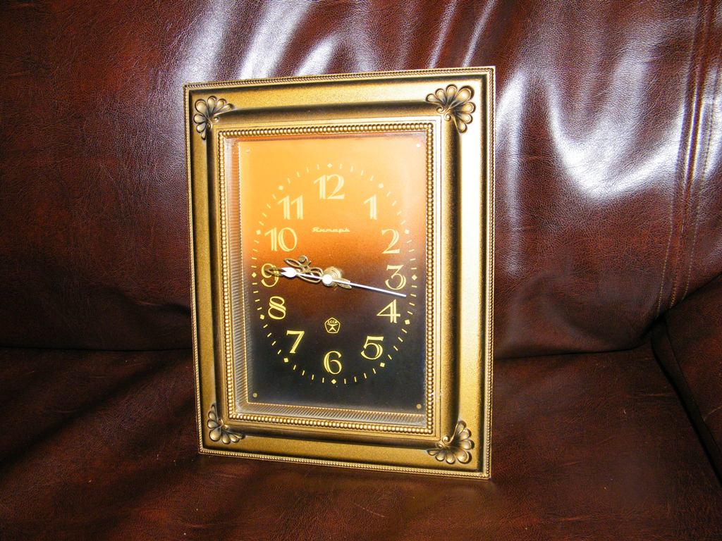 Zidni sat "JANTAR". Proizveden ranih sedamdesetih godina prosloga XX-og veka u SSSR-u. Takozvani strujni mehanizam koji pokrece velika baterija od 1.5 V. Odlicno ocuvan. Ispravan. Tacan. Dimenzije: 20 cm x 24,5 cm Dubina: 6 cm. Iz licne kolekcije.