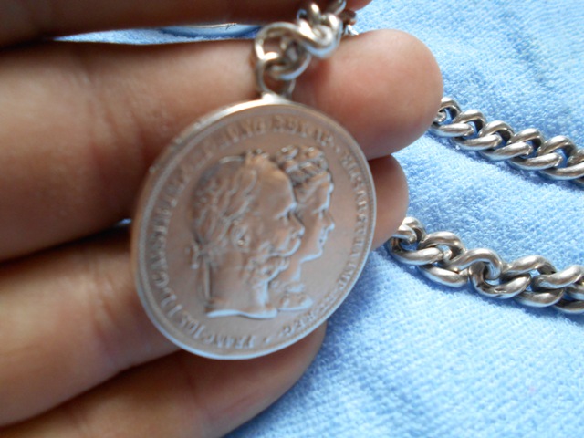 OMEGA 1900 GRAND PRIX SREBRO - potpuno ispravan , originalni srebrni lanac tezine 90 grama srebra i medaljon Austria 2 GULDEN 1879 MARRIAGE JUBILEE SILVER cena za ovu kovanicu se krece oko 200 dolara . ova na slikama je u odlicnom stanju.