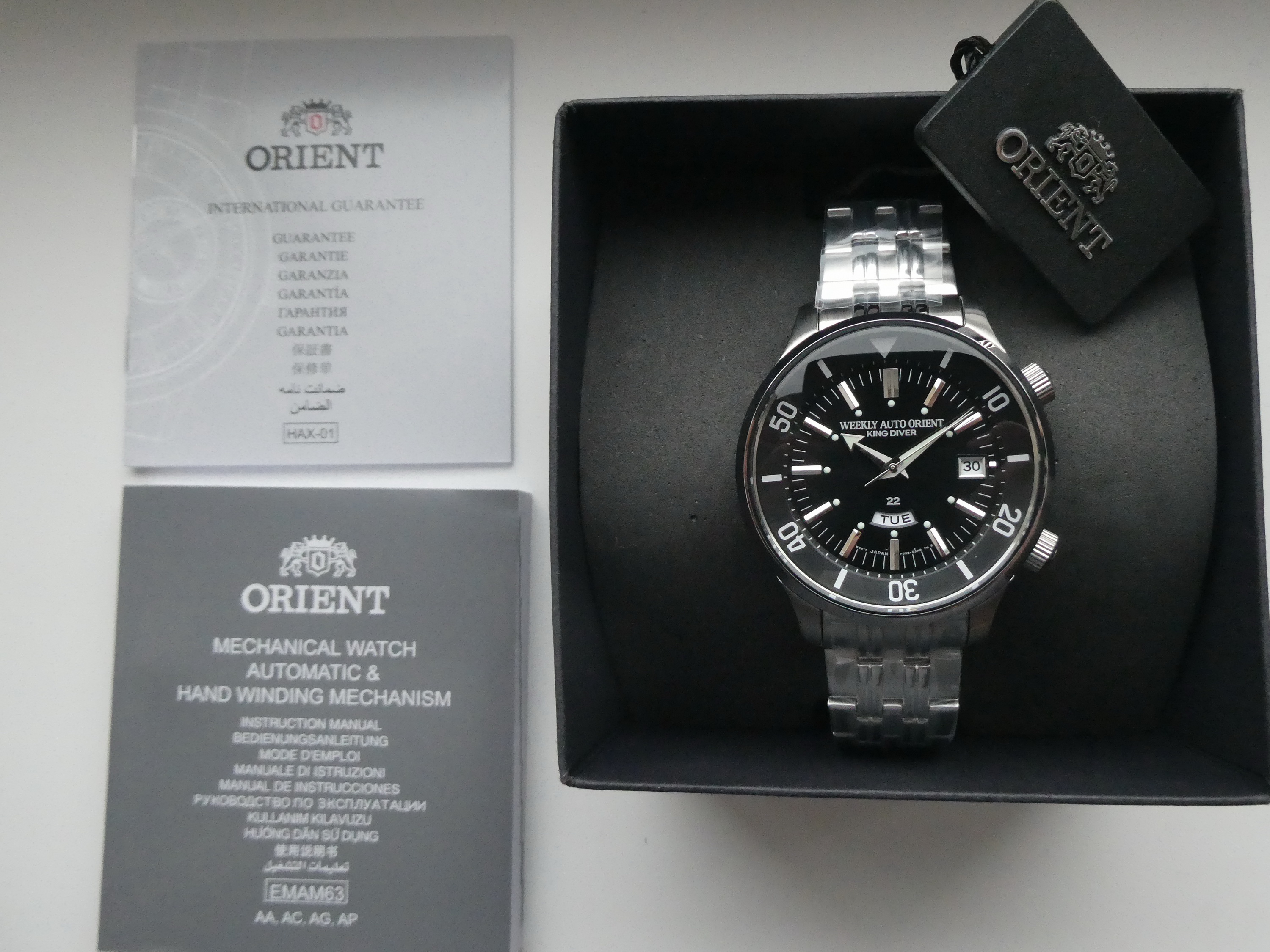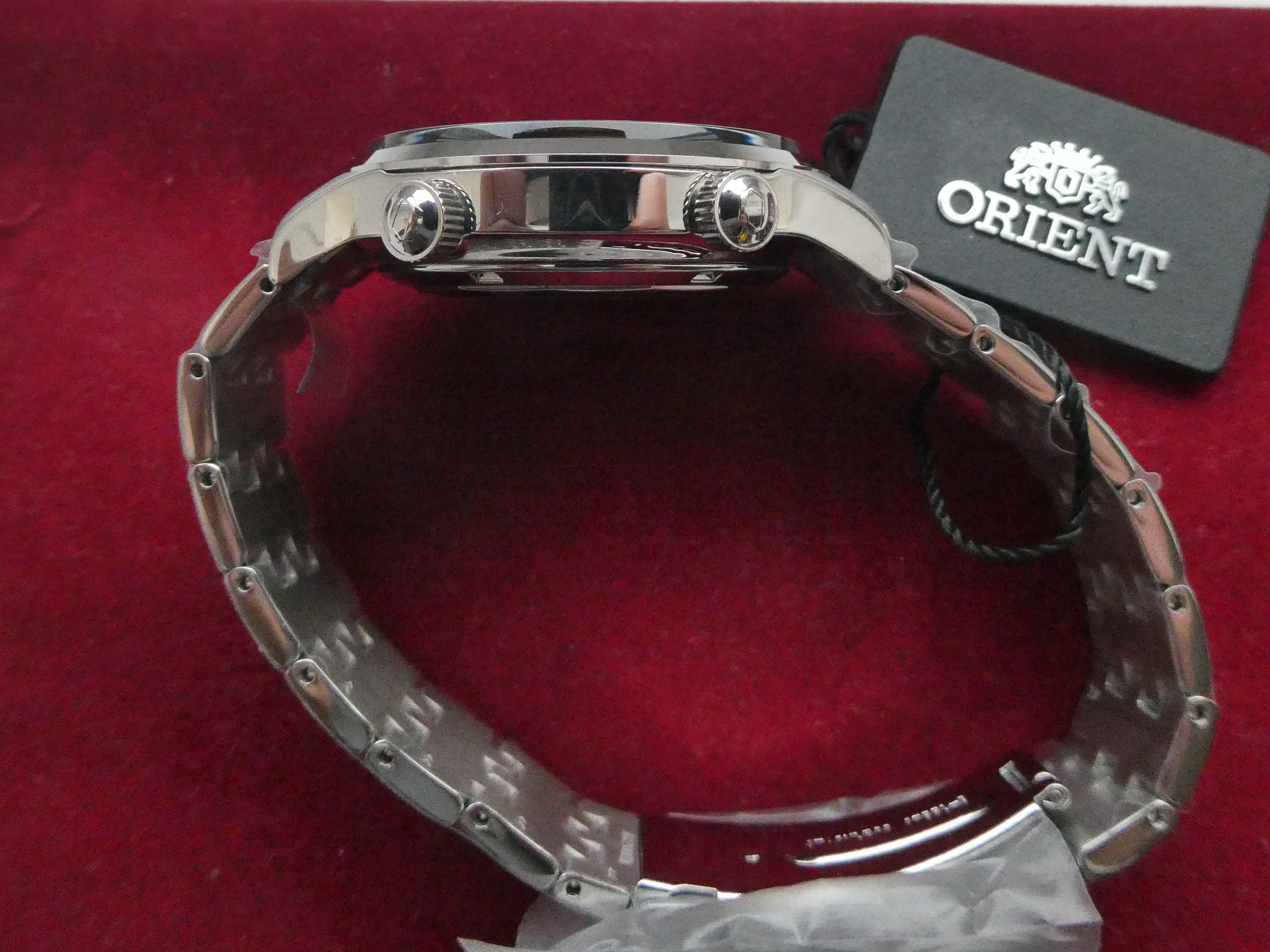 Nov neraspakovan automatik elegantni (dress) sat japanskog proizvođača ORIENT, poznata linija Bambino,treće generacije, model-FAC0000D D. ~~~ BESPLATNA ISPORUKA! ~~~ - mehanizam Orient F6724, prikaz dana u nedelji i datuma, rezerva snage 40 sati. - automatik F6724 mehanizam, dodata mogućnost ručnog navijanja i hakovanja sekunde, prikaz datuma. - kućište prečnika 40.5mm bez krunice, debljine 12mm - 30m vodotpornost - ispupčeno minerlano staklo - prelep sunburst tamno plavi cifer - potpisana krunica - crna kožna narukvica - prateća dokumentacija - svi zaštitni najloni su na satu - overena međunarodna garancija