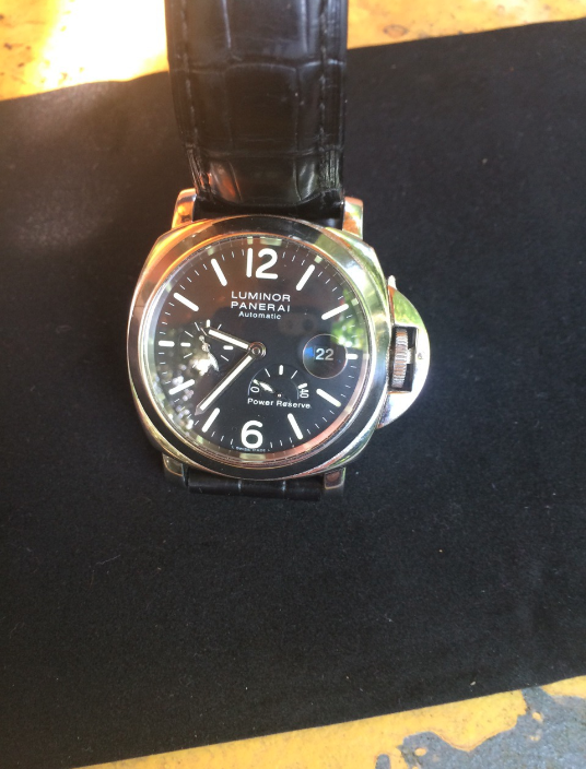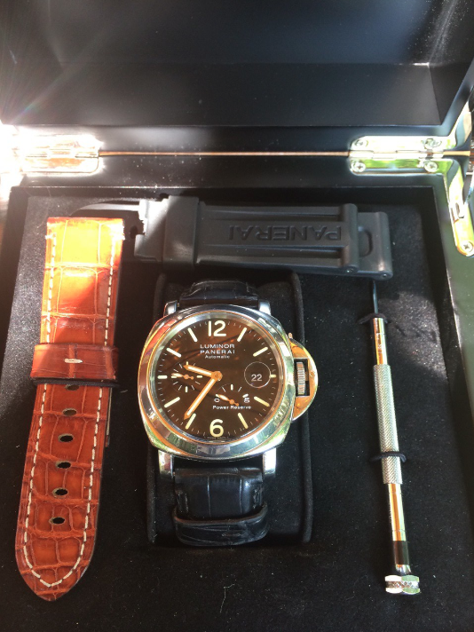 Panerai Luminor PAM 00090 Model sa rezervom snage, dolazi sa kutijom i papirima. Sat je u odlicnom stanju. Originalni kais Panerai Leather Strap ( Konjak ) sa originalnim Panerai kopčom. Pored toga, (novi) nenošen kucuh (crni - vidi sliku) za Panerai kopčom. Cena 3900e