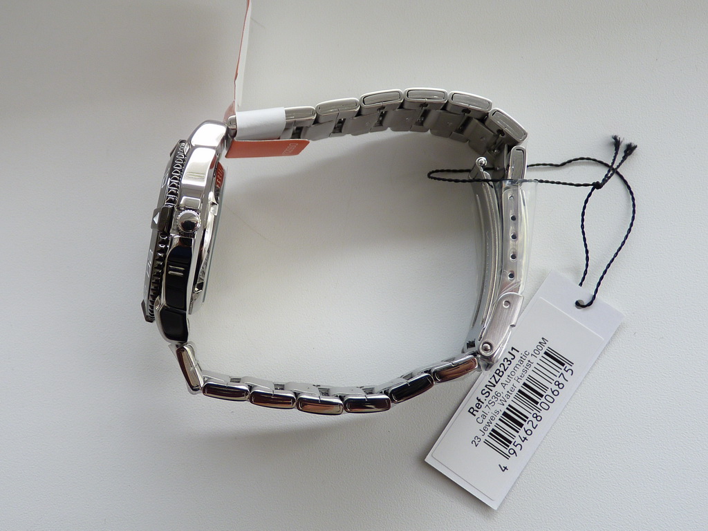 Poptuno nov neraspakovan automatic Seiko 5 Sports SNZB23J1 diver. Za razliku od većine "K" verzija koje se prodaju na evropskom tržištu, ova "J" verzija je proizvodena u Japanu i za Japansko tržište. ~~~ BESPLATNA ISPORUKA ~~~ - čuveni mehanizam 7S36, 23 rubina, prikaz dana u nedelji i datuma, rezerva snage 43 sata - kućište prečnika 39mm bez krunice, debljine 12mm, zaštićena krunica - rotirajuća korona za merenje proteklog vremena sa iluminacijom markera na pozicji "0" - 100m vodotpornost - čelična narukvica širine 20mm sa sigurnosnom kopčom - "Hardlex crystal" staklo (znatno otpornije na grebanje i pucanje od mineralnog) - pregledan cifer sa intrigantnom ugraviranom teksturom i odličnom "LumiBrite" iluminacijom kazaljki i markera. - kontrast, i sportsku notu daje svetlo zelena sekundara - provdan pozadinski poklopac - prateća dokumentacija - svi zaštitni najloni su na satu - overena GARANCIJA - Made in Japan!