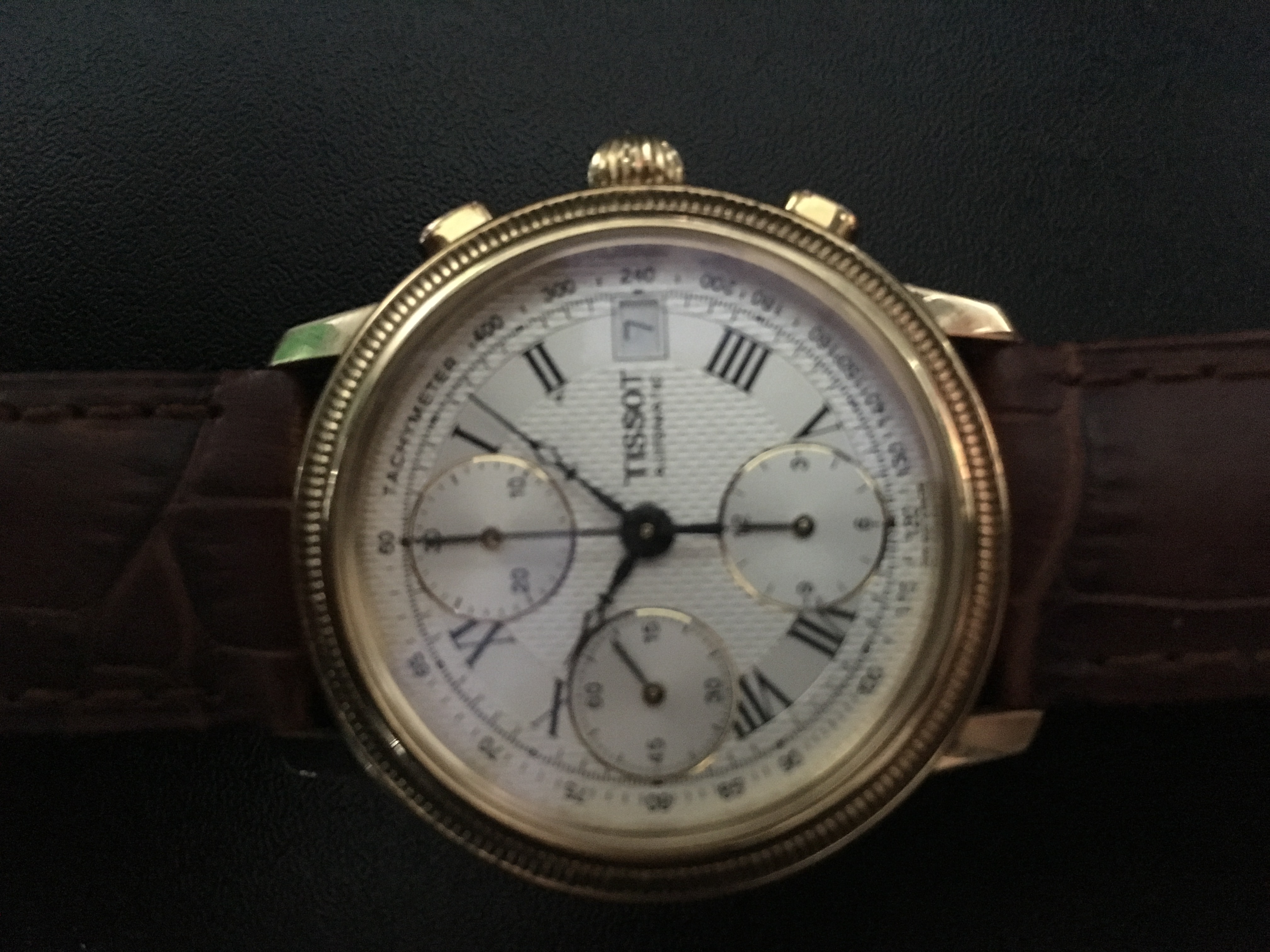 Prodajem Tissot Bridgeport 71343533 T , 36mm,18k gold muski/unisex sat. Sat kupljen (dobijen) 3100e u Svajcarskoj pre 4 godine. .. cene ovog modela (polovnog se krecu od 2000+ e). Sat nema nikakve ogrebotine, zareze itd. skoro pa besprekorno ocuvan 9,5/10, narukvica nije originalna. Vise informacija: http: //www. chrono24. com/tissot/bridgeport-t71343533-in-oro-giallo-36mm--id3454662. htm